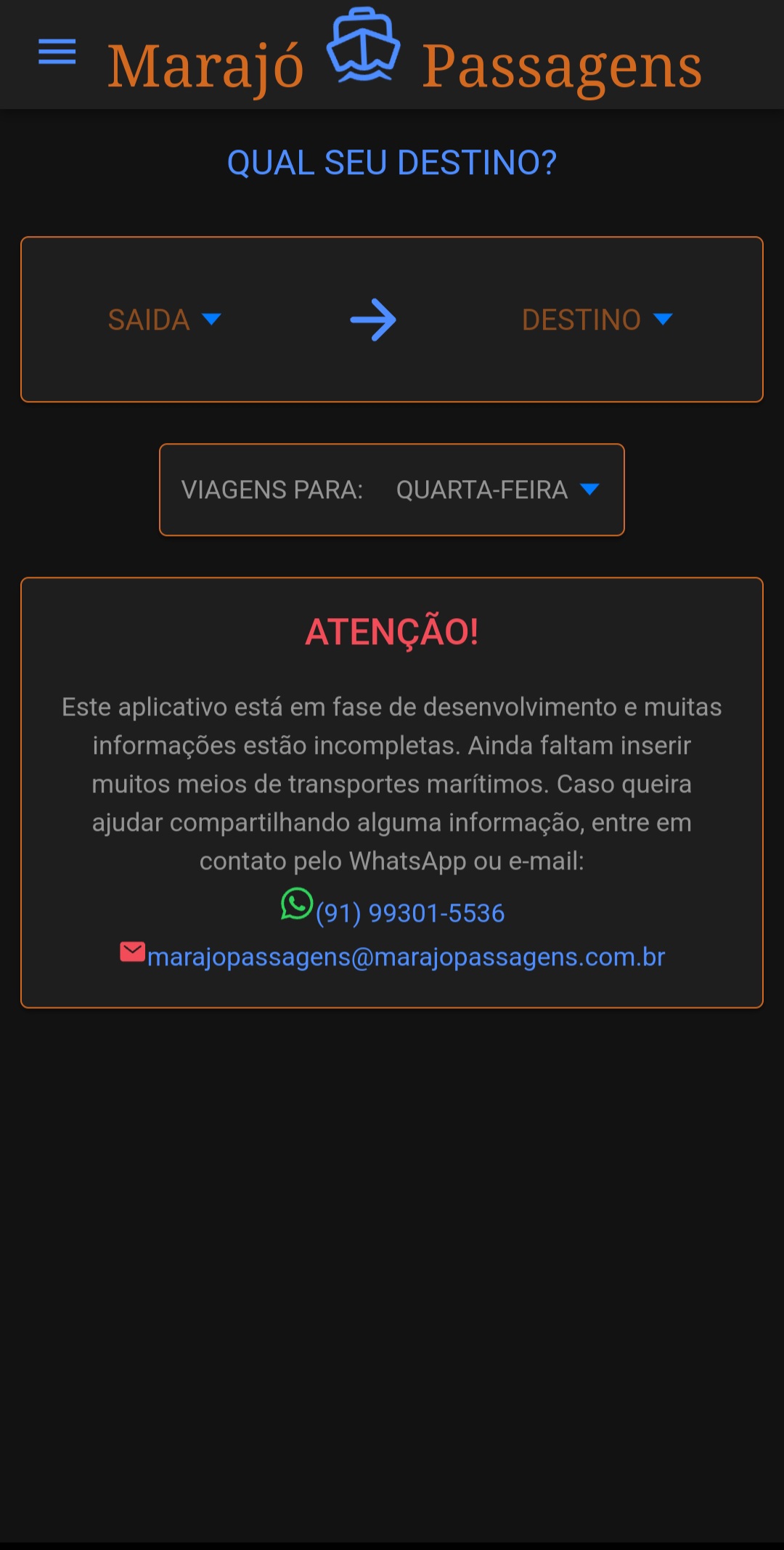 Olá! Sou Igor Felix, o criador deste aplicativo que conecta você às rotas de navios e lanchas da Ilha de Marajó. Tenho trabalhado de forma independente para oferecer uma ferramenta útil e acessível para moradores, turistas e viajantes da região.